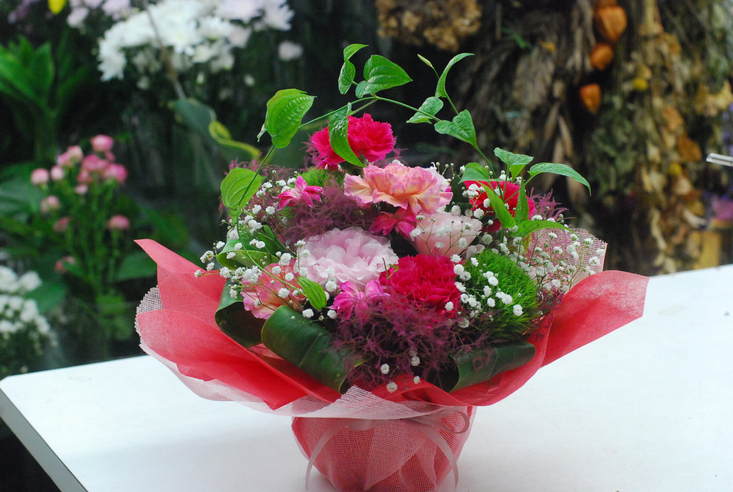生花や造花をはじめ、プリザードフラワー、ソープフラワー、アレンジメント、花束、冠婚葬祭生花スタンド、洋ラン、観葉植物などお花のことならなんでもおまかせ下さい。